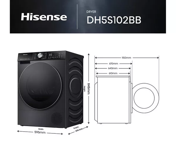 Hisense 10Kg Titanium Heat Pump Dryer | 10-Year Warranty | DH5S102BB