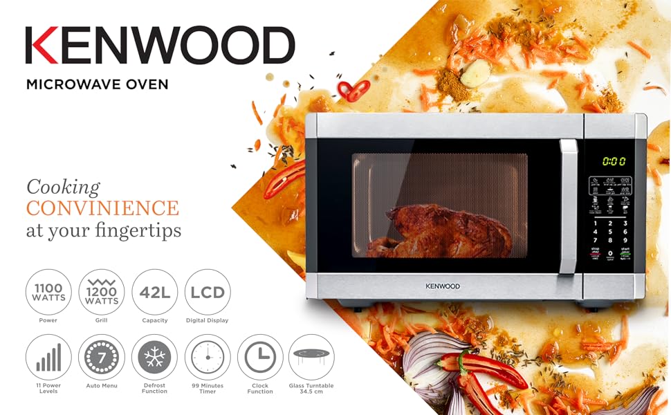 Discover the power of the Kenwood 42 Liter Microwave with Grill, featuring 1,100W microwave power and 1,400W grill power. Cook effortlessly today!