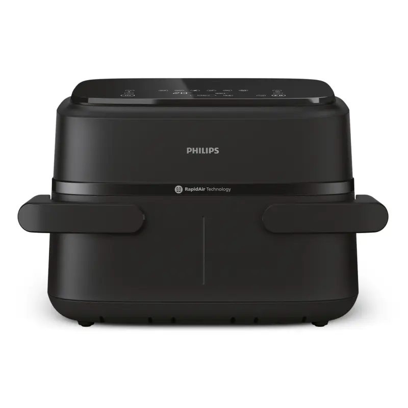 The Philips 1000 Series NA150/09 Dual Basket Air Fryer uses RapidAir Technology to deliver crispy, tender meals with up to 90% less fat compared to a traditional deep fryer. Its unique FlexDrawer design allows users to switch between two independent 3.55L baskets or one large 7.1L cooking tray to accommodate both large family meals and dual-dish cooking.