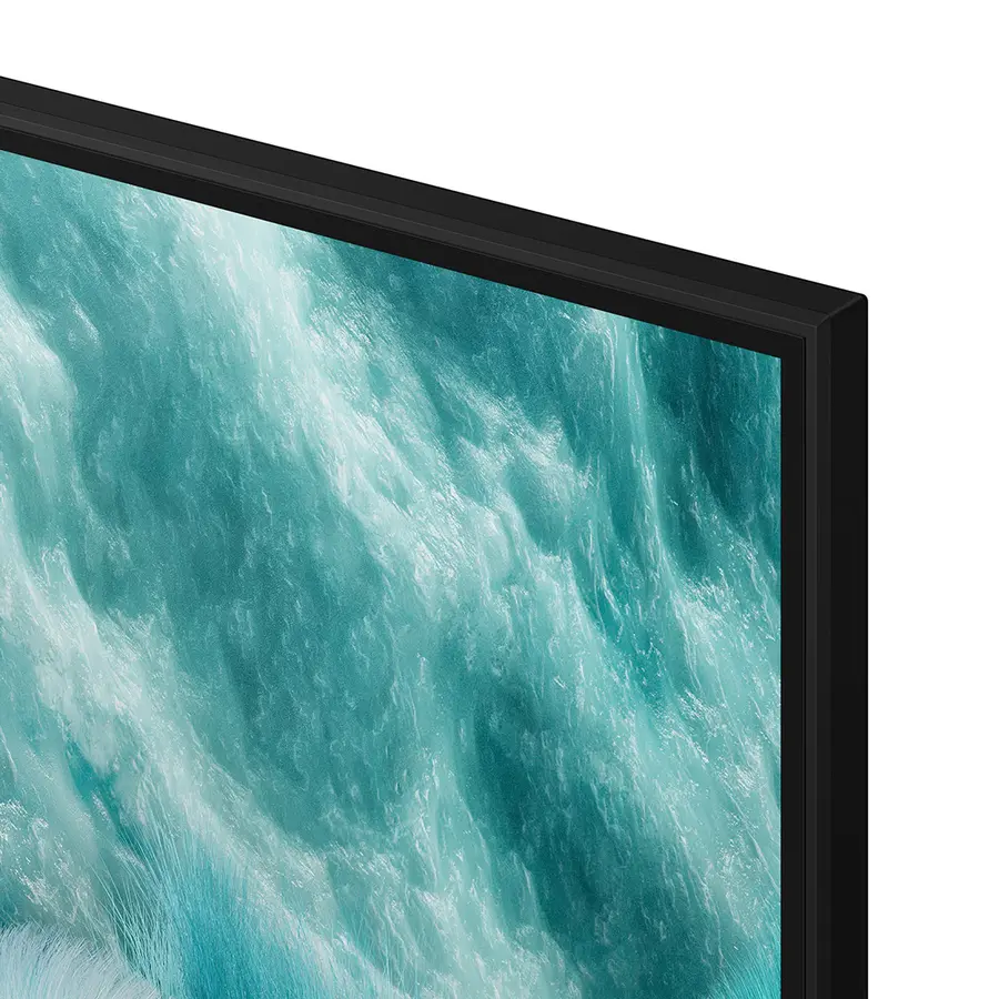 The Samsung QA75Q7F is a 75-inch class QLED 4K Vision AI Smart TV with a sleek, AirSlim design. It uses a Q4 AI Processor to optimize picture and sound quality and runs on the Tizen operating system.
